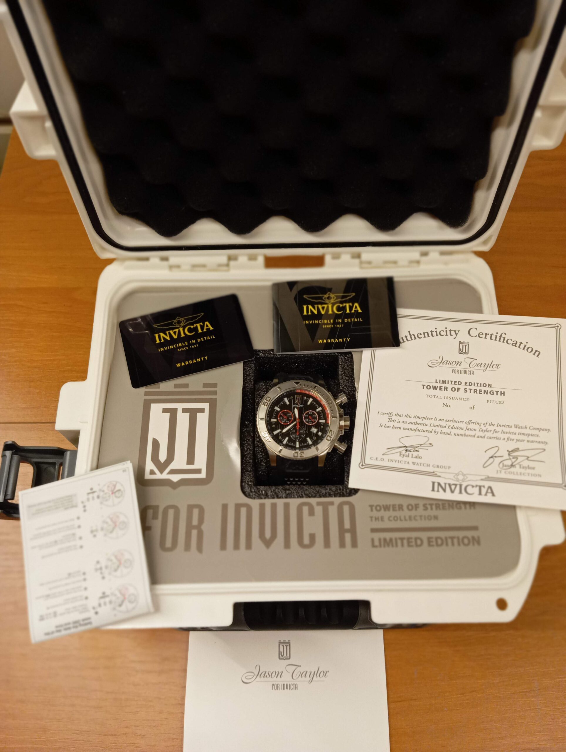 Eladó Jason Taylor limitált Invicta karóta, 3 darabos óratartó díszdobozban.