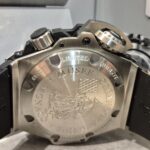 Hublot King Power Oceanographic 4000 Monaco 1000 darabos limited edition diver kompletten hatalmas,csak ehhez a modellhez készült cipzáras tripla dobozában,limitációs könyvével Jean Claude Biver akkori elnök aláírásával,gyári garancia kártyájával,fityegőjével,búvárhosszabbítós,külön titán csatvéges tartalék szíjjal és a típus történetét elmesélő könyvvel leszervizelt makulátlan esztétikai és műszaki állapotban 300-as gyári lengéssel szuper áron eladó,cserélhető.A világ legrobusztusabbnak tartott búvárórája,melyet a 6,5mm-es zafírüveggel,túlméretezett a belső lünettát 2 óránál állító koronával,10 óránál automata hélium szeleppel,gyors szíjcserélő gombbal,mikrogyöngyözött titánból és fekete kompozitgyanta berakással készült lünettával és a HUB1401-es szerkezettel vértezett fel a gyártó.A számlap és a mutatók extrém erősen világítanak.Az órát 5000méteres nyomásig tesztelte a gyár.A Monacói Oceanográfiai múzeummal együttműködésben készült.Egy példánya sokáig ki volt állítva a múzeum egyik akváriumában.Ilyen méretű órákat ma már nem készít a gyár egy igazi kuriózum,megmutatva,hogy a Svájci luxusóragyártás milyen végletekig mert elmerészkedni.Magát az eladó órát 2017.május 04-én regisztrálták be a gyár elektronikus rendszerébe.Na ez az az óra amit egy Palauba tervezett búvár nyaraláson sem kell levenni.Ref.száma:731.NX.1190.RX.Kérem tekintse meg további óráimat.