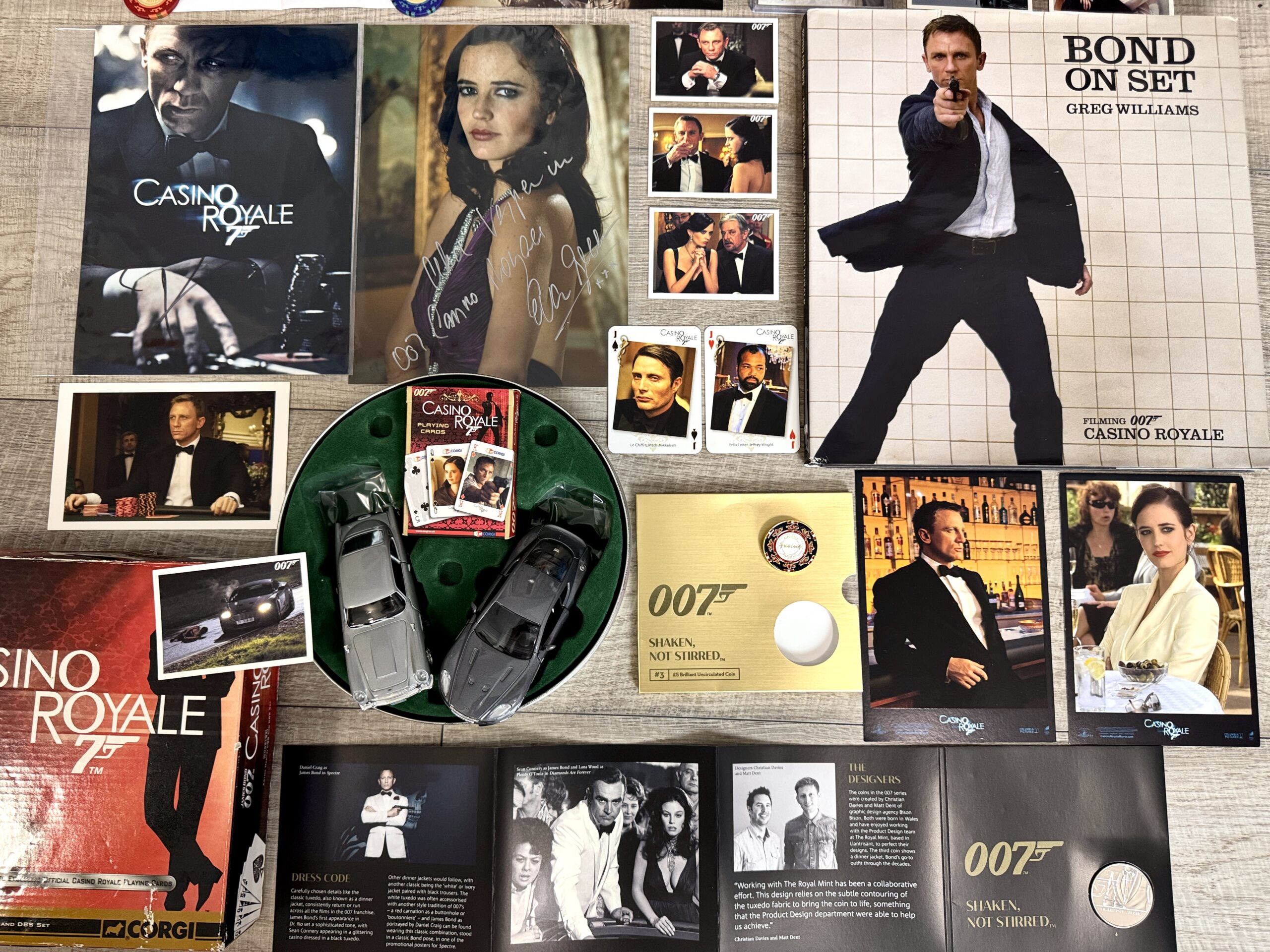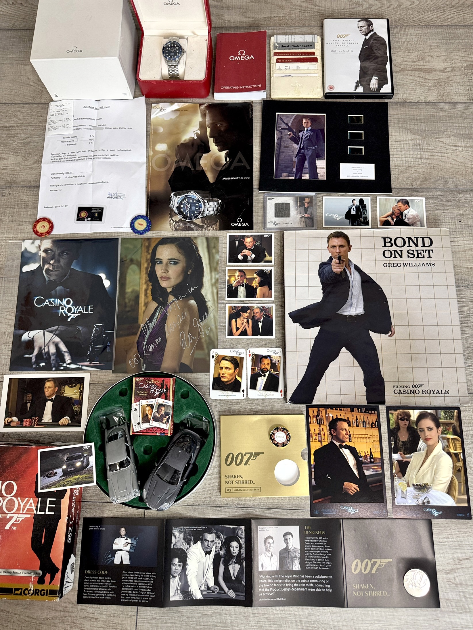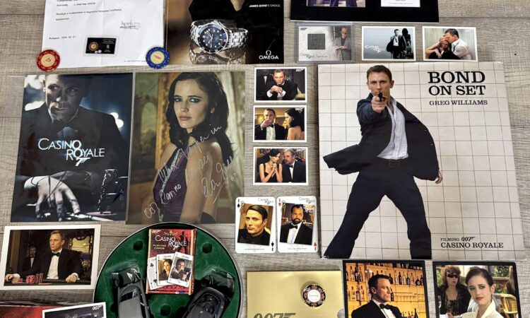 Egy kivételes Casino Royale központú James Bond kollekció, amely ötvözi az ikonikus Omega Seamaster Casino Royale órát, hitelesített autogramokat, ritka filmes relikviákat és különleges Bond gyűjtői tárgyakat.