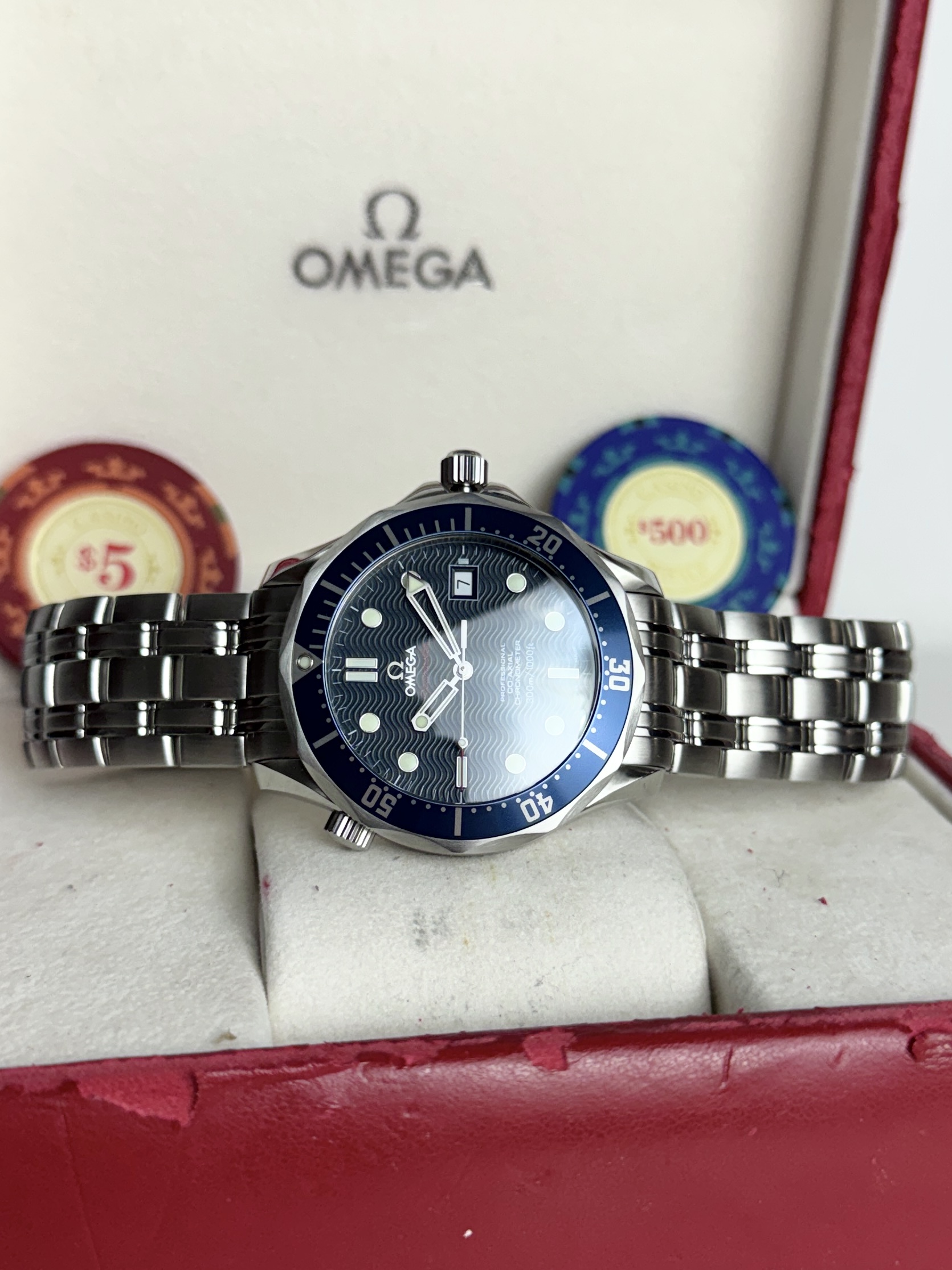 Az óra az eredeti Omega dobozban, dokumentációval és tartozékokkal kerül átadásra.
