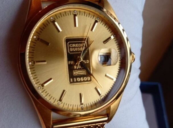 Svájci 24 kt Credit Suisse Arany Betétes Luxus Férfi Ékszer Karóra, Ritka Kuriózum Eladó. Sorszámozott karóra különlegesség komoly vevőnek. Ajánlat tehető az órára, irányár 369.000 Ft.
