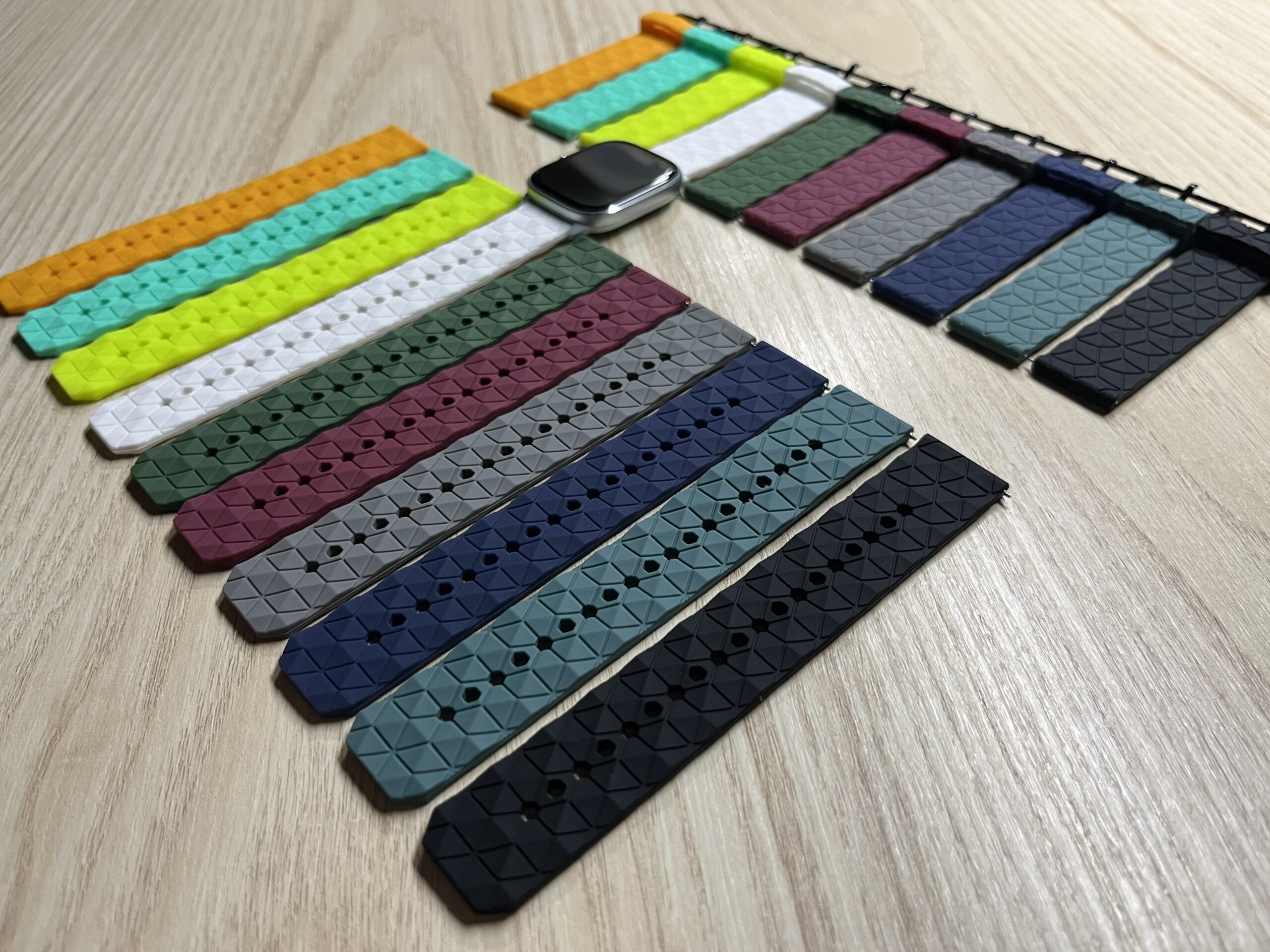 Dobd fel órádat ezzel a 20 mm-es, színes szilikon óraszíjjal, amely modern rombusz mintázatával azonnal magára vonja a tekintetet! A rugalmas, bőrbarát szilikon kényelmes viseletet biztosít egész nap, legyen szó munkáról, sportolásról vagy hétköznapi használatról.