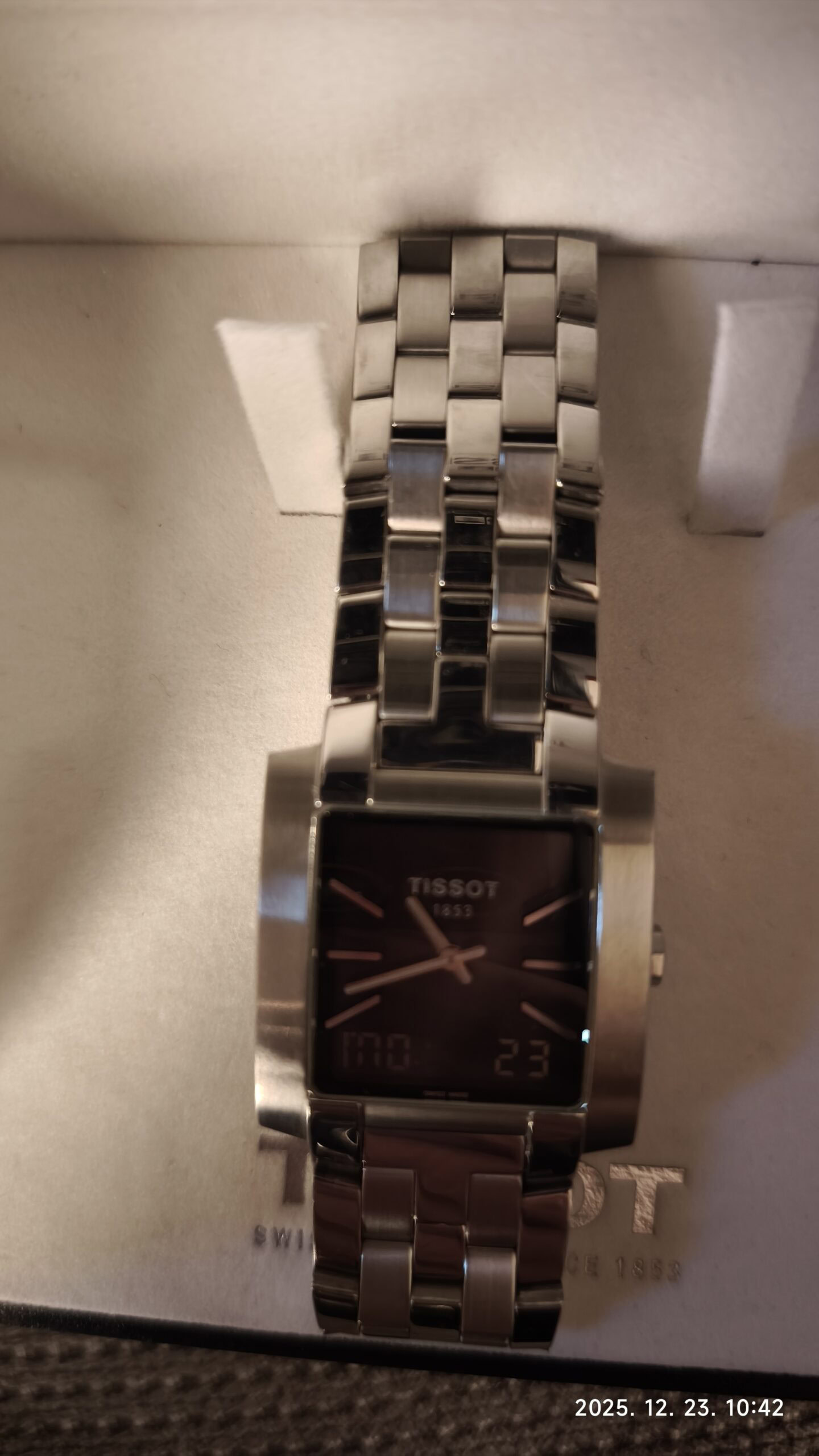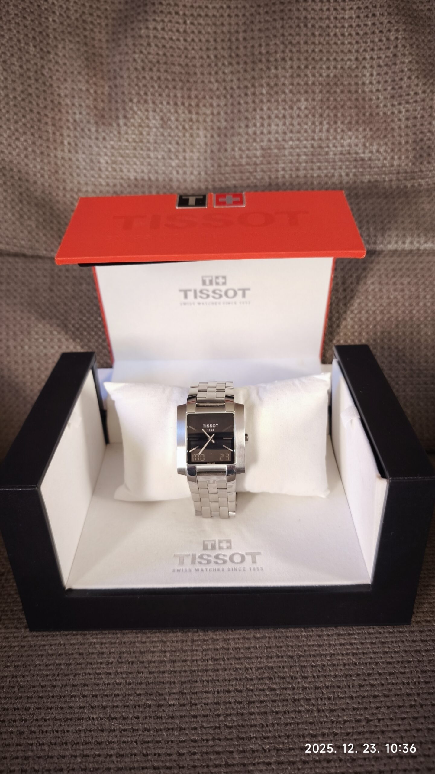 Eladó egy díszdobozban lévő Tissot férfi karóra. A 2009-ben vásárolt termék alig volt használva. Zafír üveg, nemesacél tok és szíj, 30 M cseppálló. Funkciók: két időzóna, stopper, dátum, ébresztő, visszaszámláló.