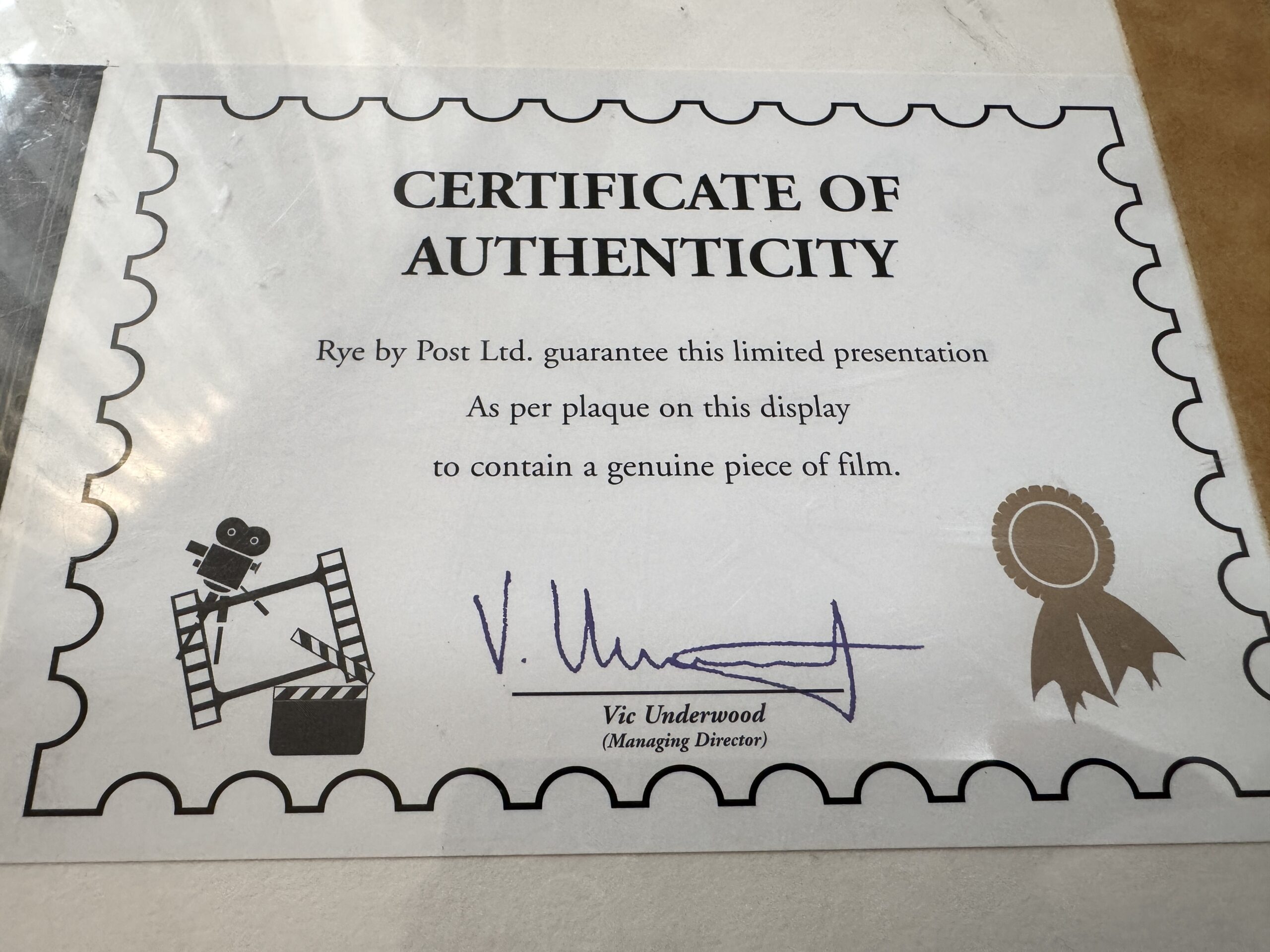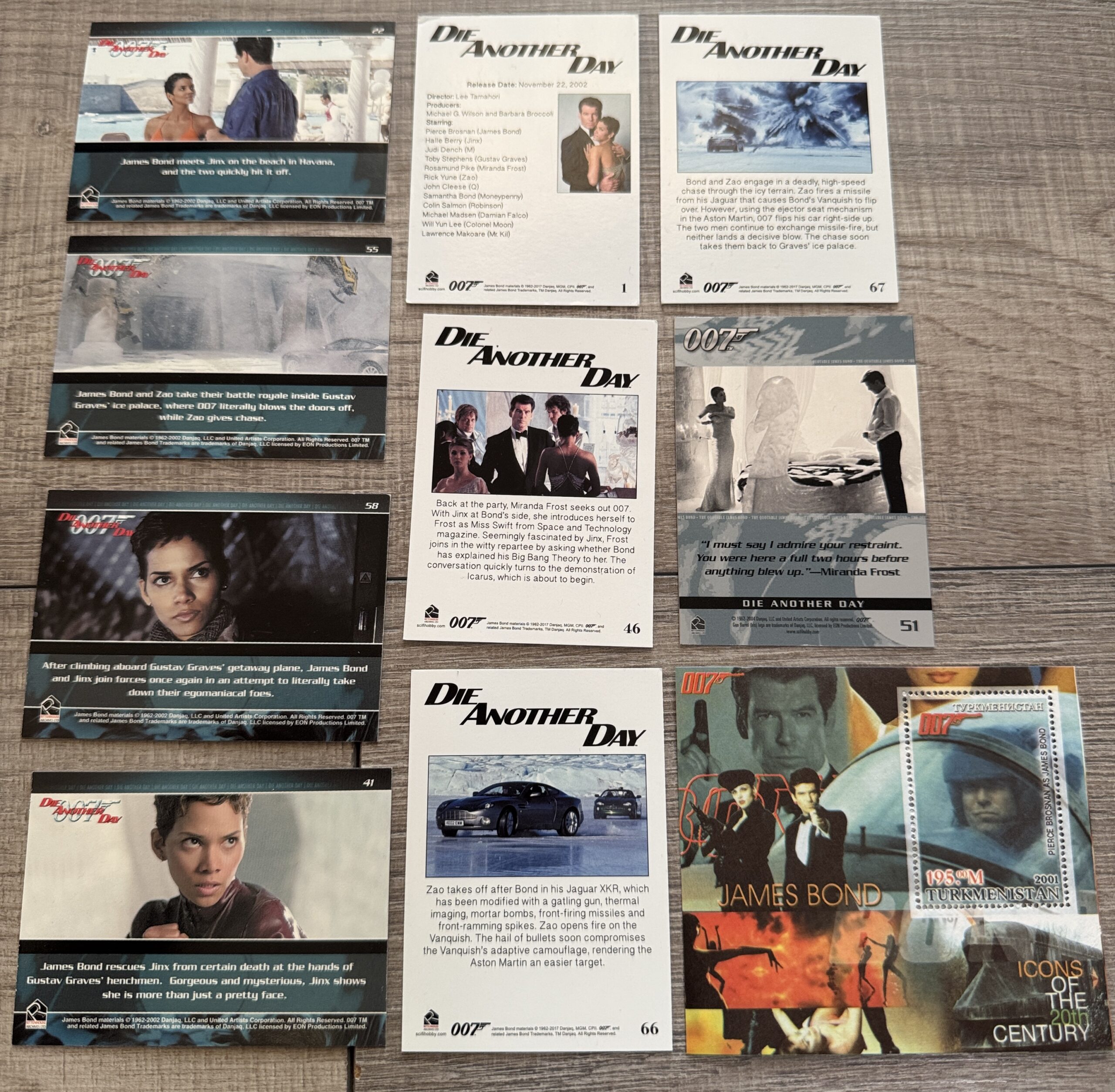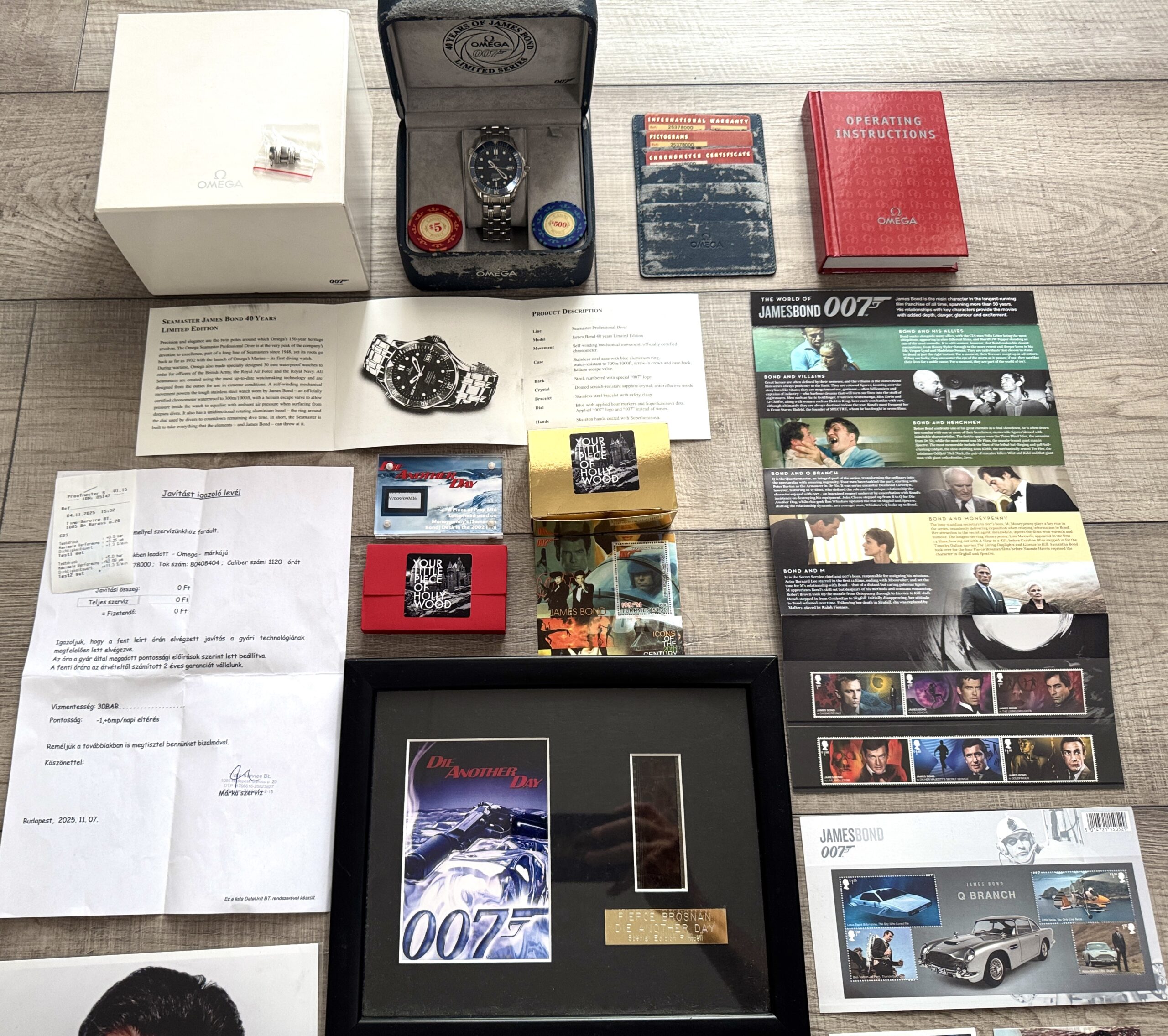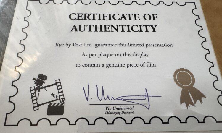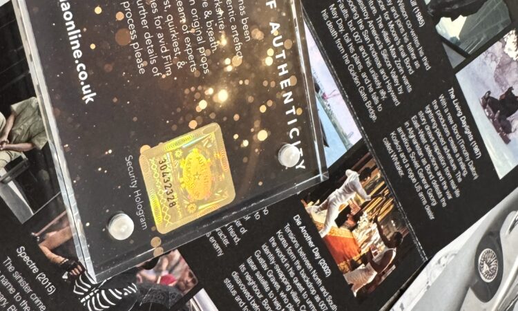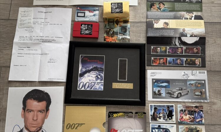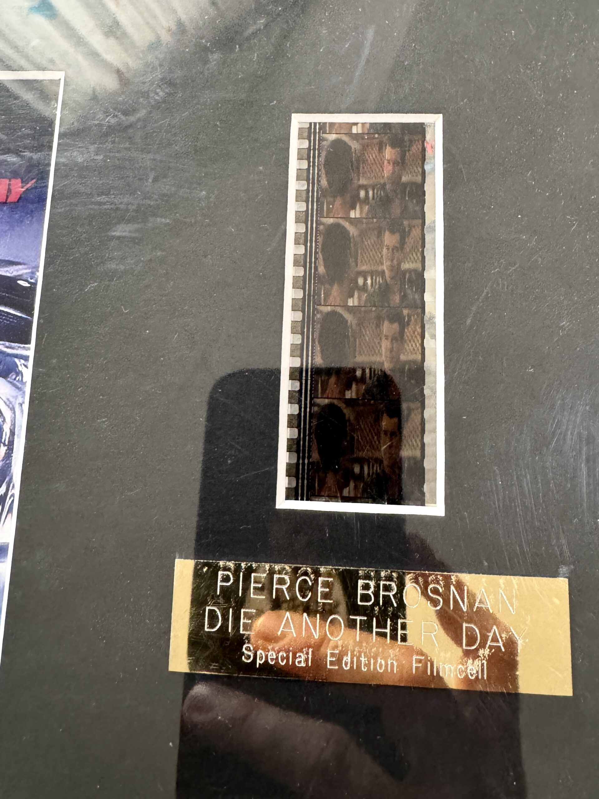 – A4-es keretezett képméretű, korlátozott kiadású, hivatalos 35 mm-es filmcellák a James Bond: Halj meg! című filmből, hitelesítve és hitelesítve a Rye by Post Ltd által