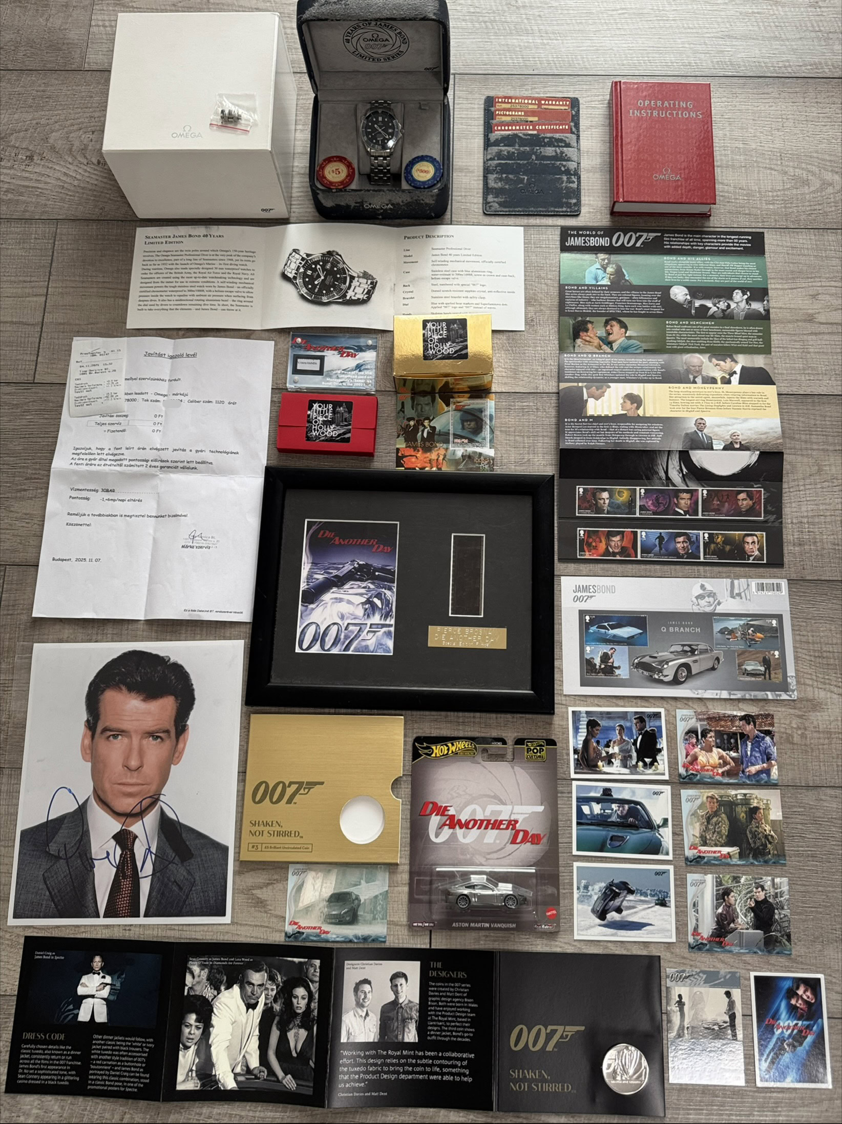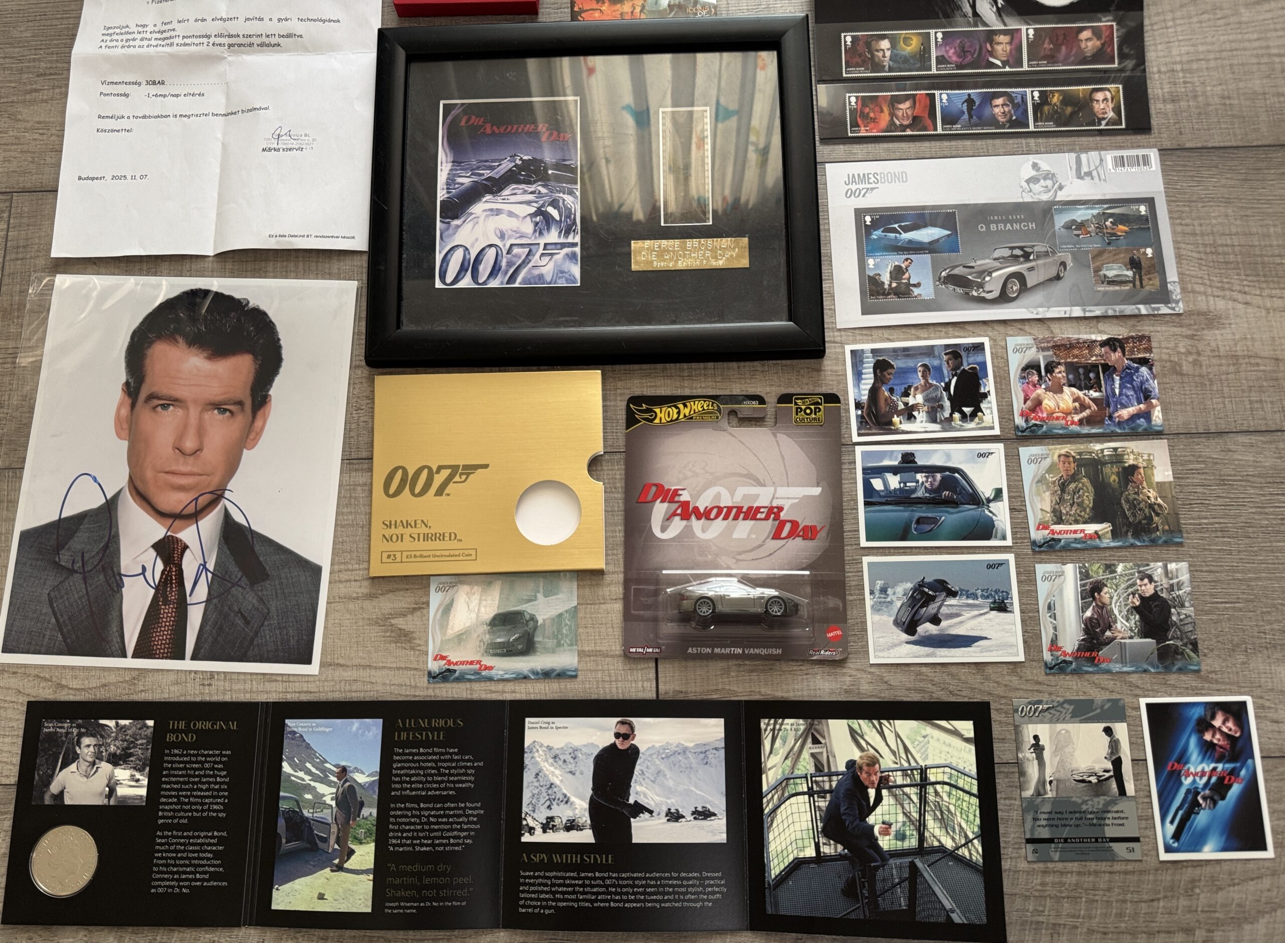 – 1 db Pierce Brosnan eredetileg aláírt fotója, hitelesítve és hitelesítve a b’bc által, aki a legnagyobb és legrégebbi 007-es autogramkereskedő.