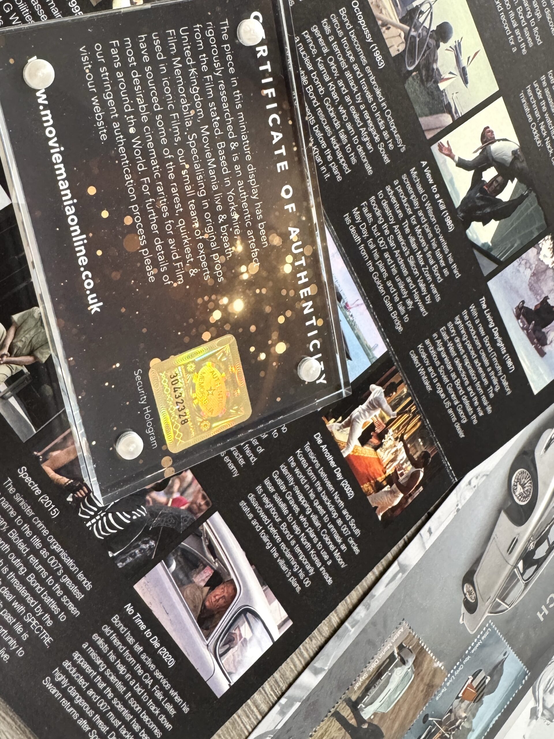 – Ritka, hiteles gyűjtői darab Az Ön kis hollywoodi ereklyéje egy darab kellék MI6 levélpapír, amelyet a 2002-es filmben a Moneypenny íróasztalon használtak, biztonsági hologrammal lezárva, nr: 30432328