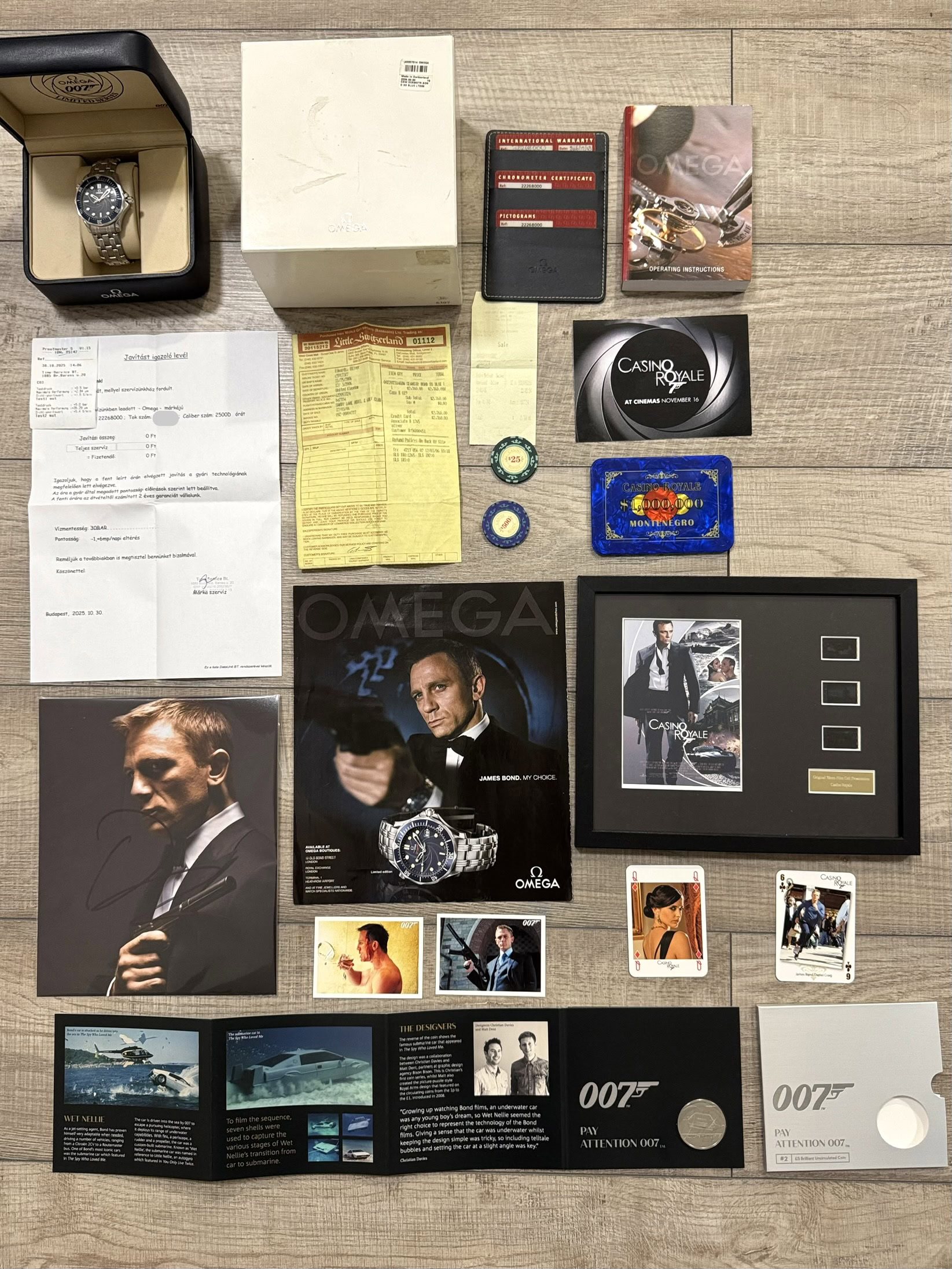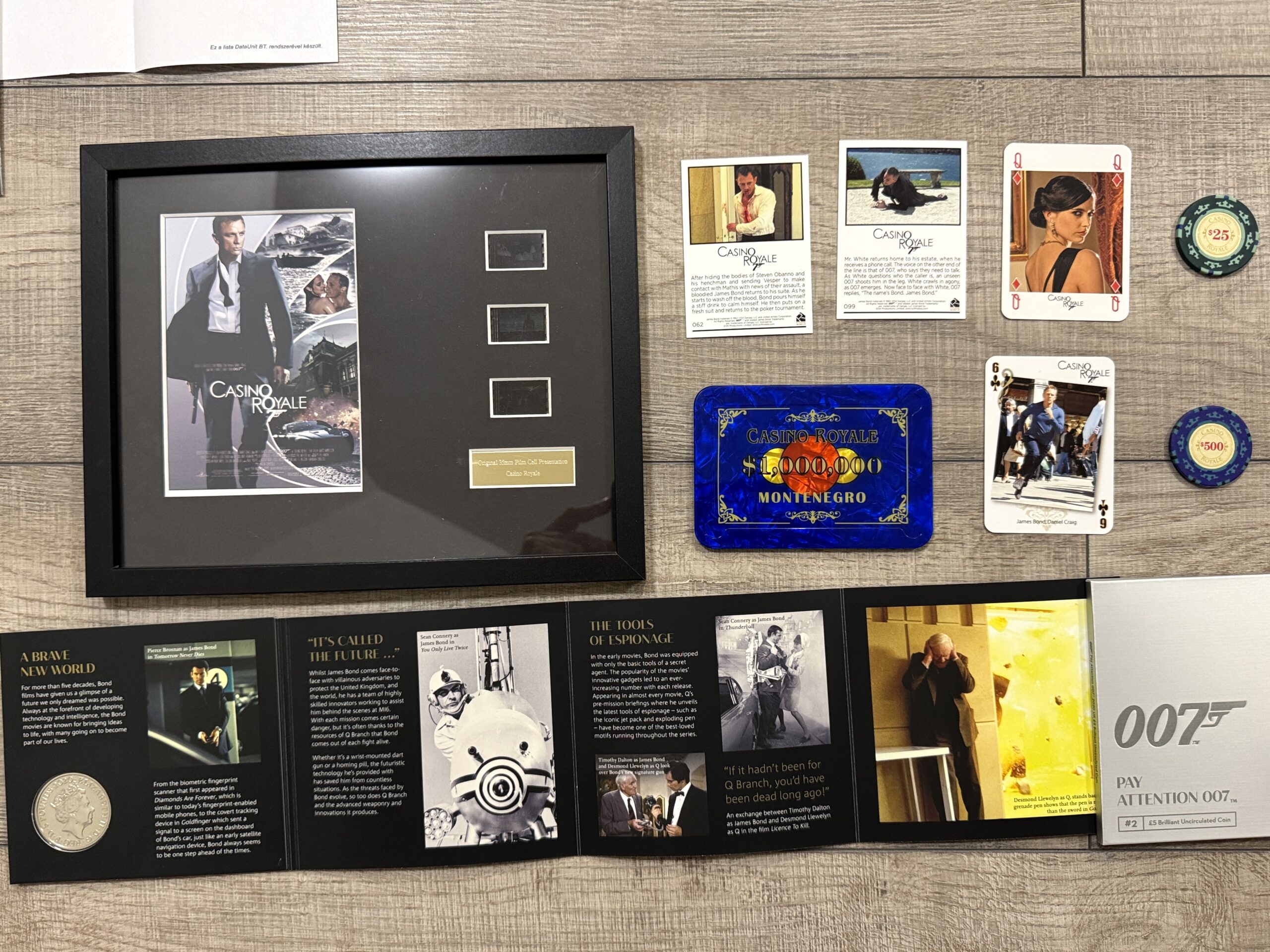 – Limitált kiadású eredeti filmrészlet a Casino Royale 35 mm mozi filmtekercsből, The Old Picture House Emporium Promotions által hitelesítve