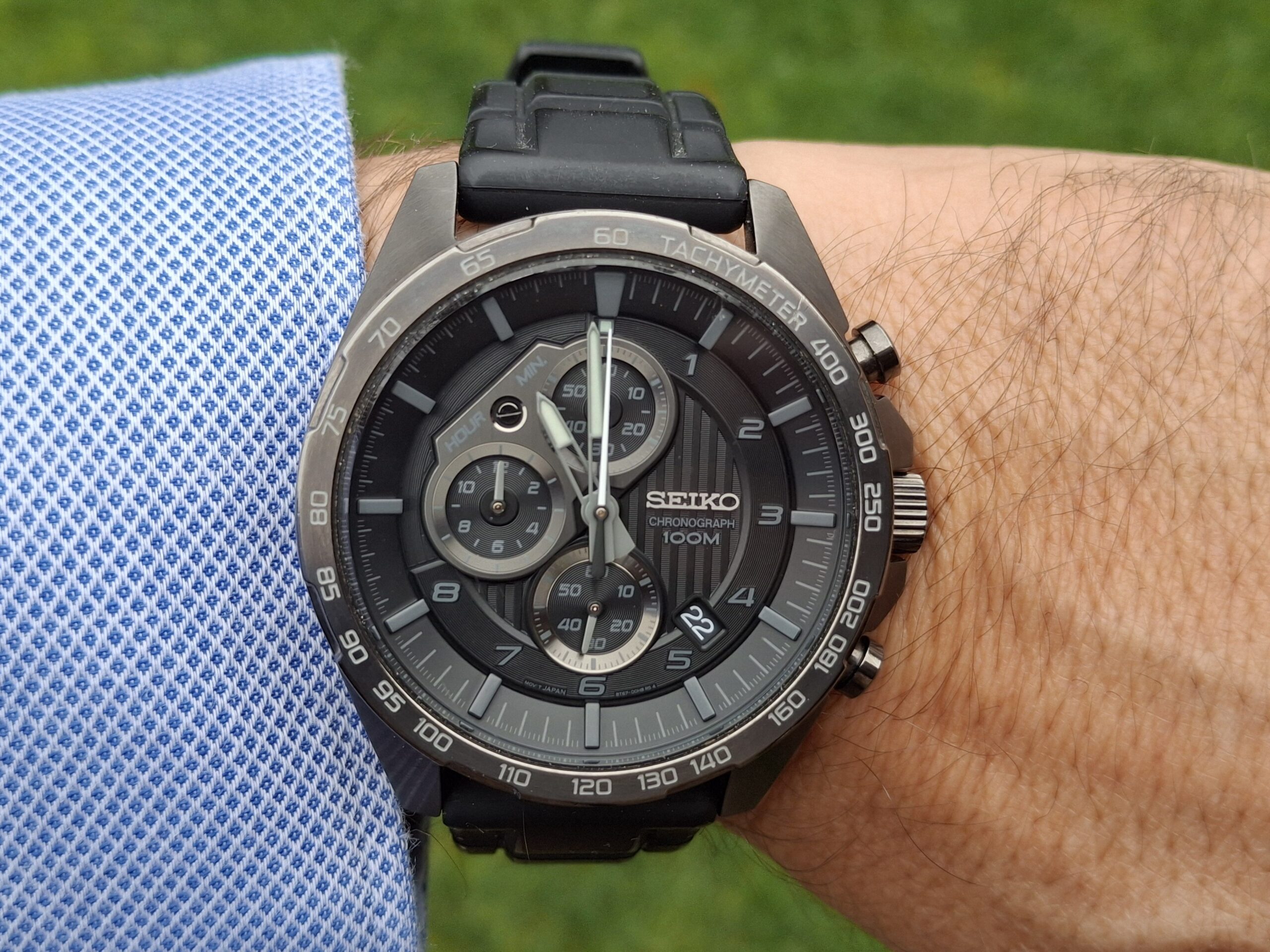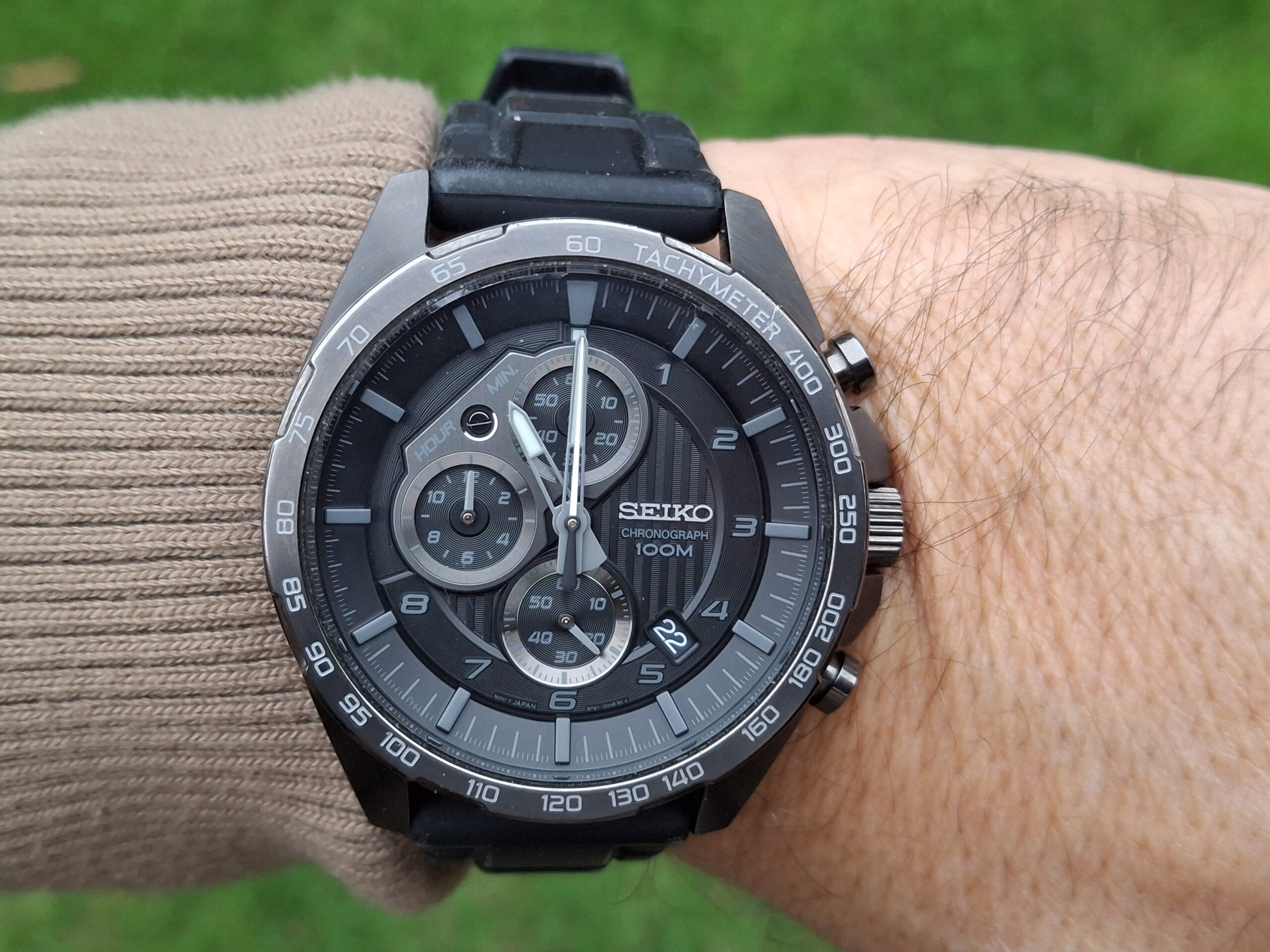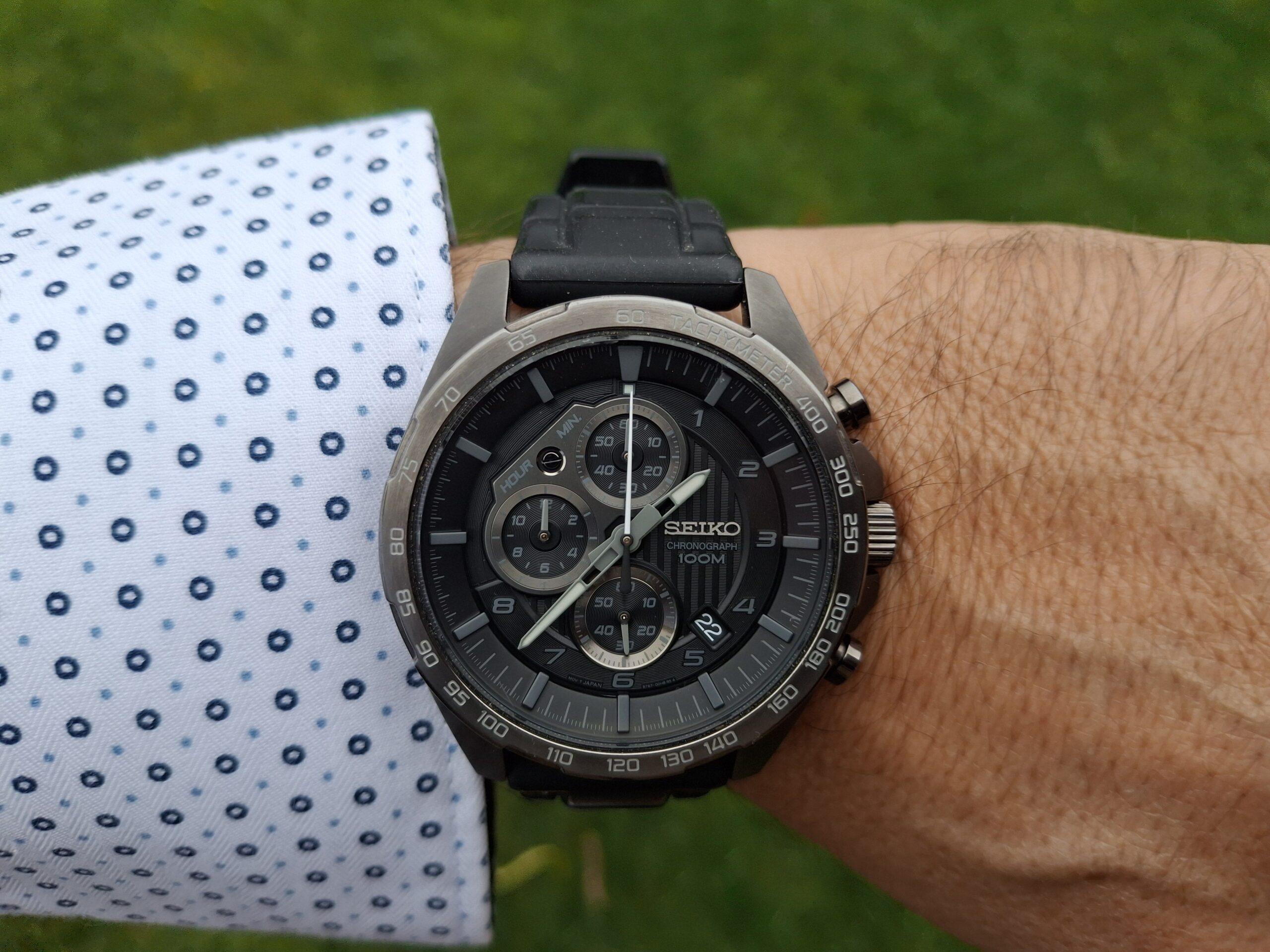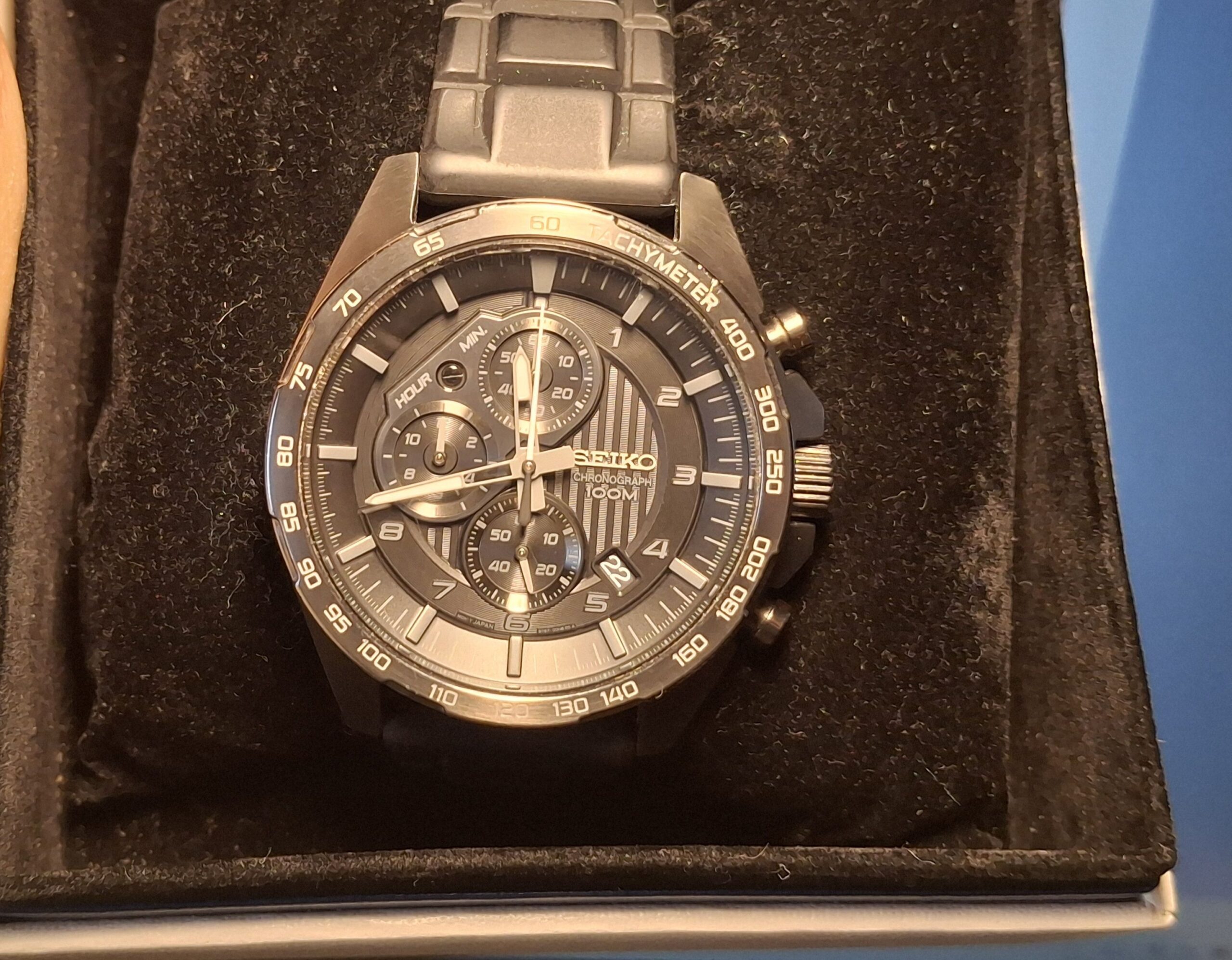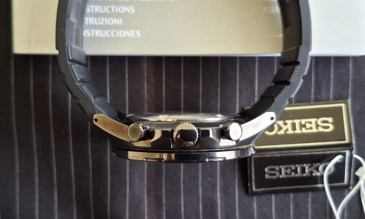 Eladóvá vált a képeken látható, nagyon szép állapotban lévő, gyönyörű, szinte hordatlan Seiko Chronograph karórám eredeti Seiko dobozában, használati útmutatójával, fityegőjével, igazán különleges megjelenéssel. Sportosan elegáns, csupán néhányszor viselt darab (a szíj is erről árulkodik), ami különleges, „dark” megjelenésű, hiszen az full fekete. Ez a típus abszolút nem gyakori, sokkal inkább ritka, nem sűrűn jön szembe, de nagyon keresett.