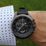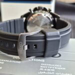 Funkciók: 1/5 másodperc pontosságú stopper (Maximális időtartam: 12 óra), Dátum, Tachymeter skála, Menetes hátlap, Sötétben foszforeszkáló mutatók