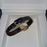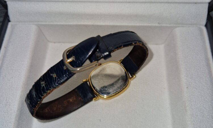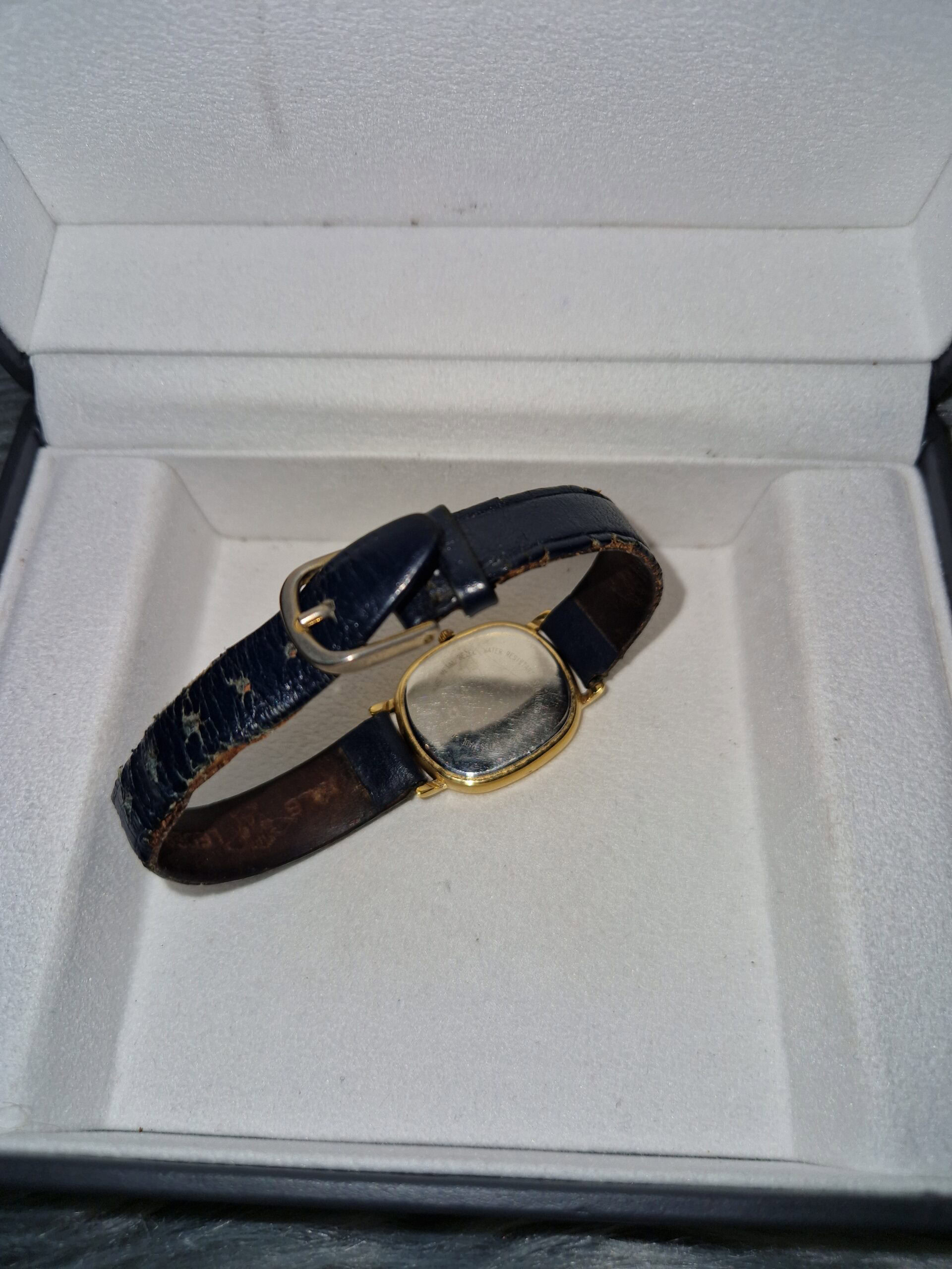 Ritka, ovális tokozással, bőr szíjjal.